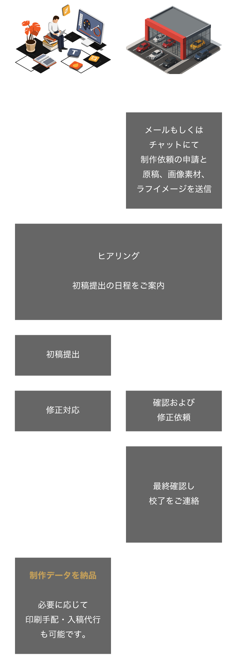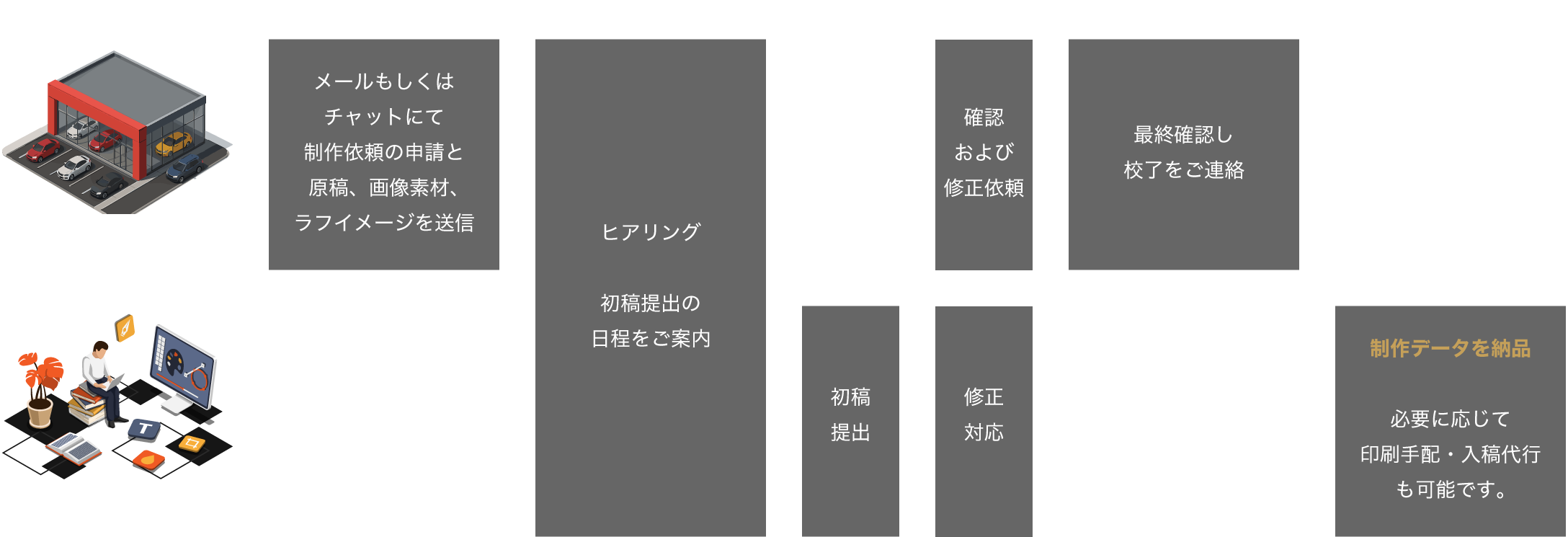 ※原稿・素材が揃っているほどスムーズに進行します。